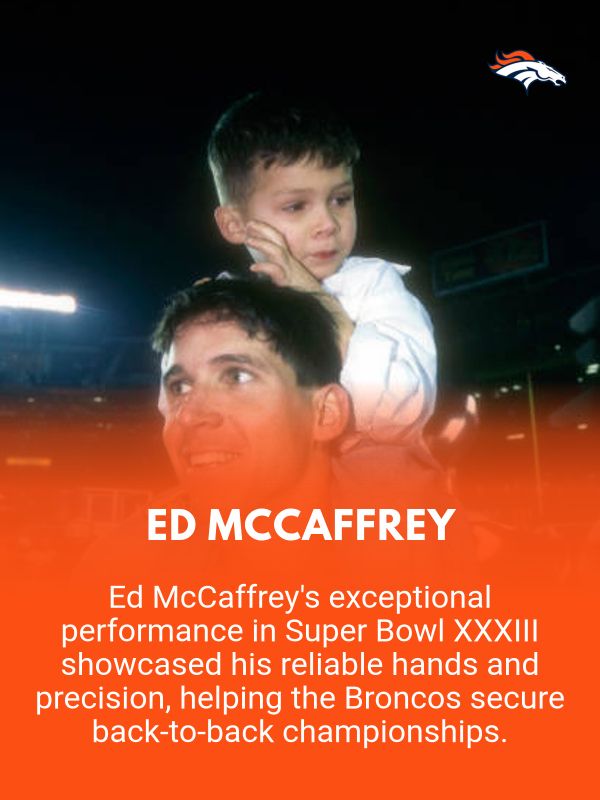 In Super Bowl XXXIII, Ed McCaffrey played a crucial role in the Denver Broncos' victory over the Atlanta Falcons, contributing with his precise route-running and dependable catching ability. January 6, 2026